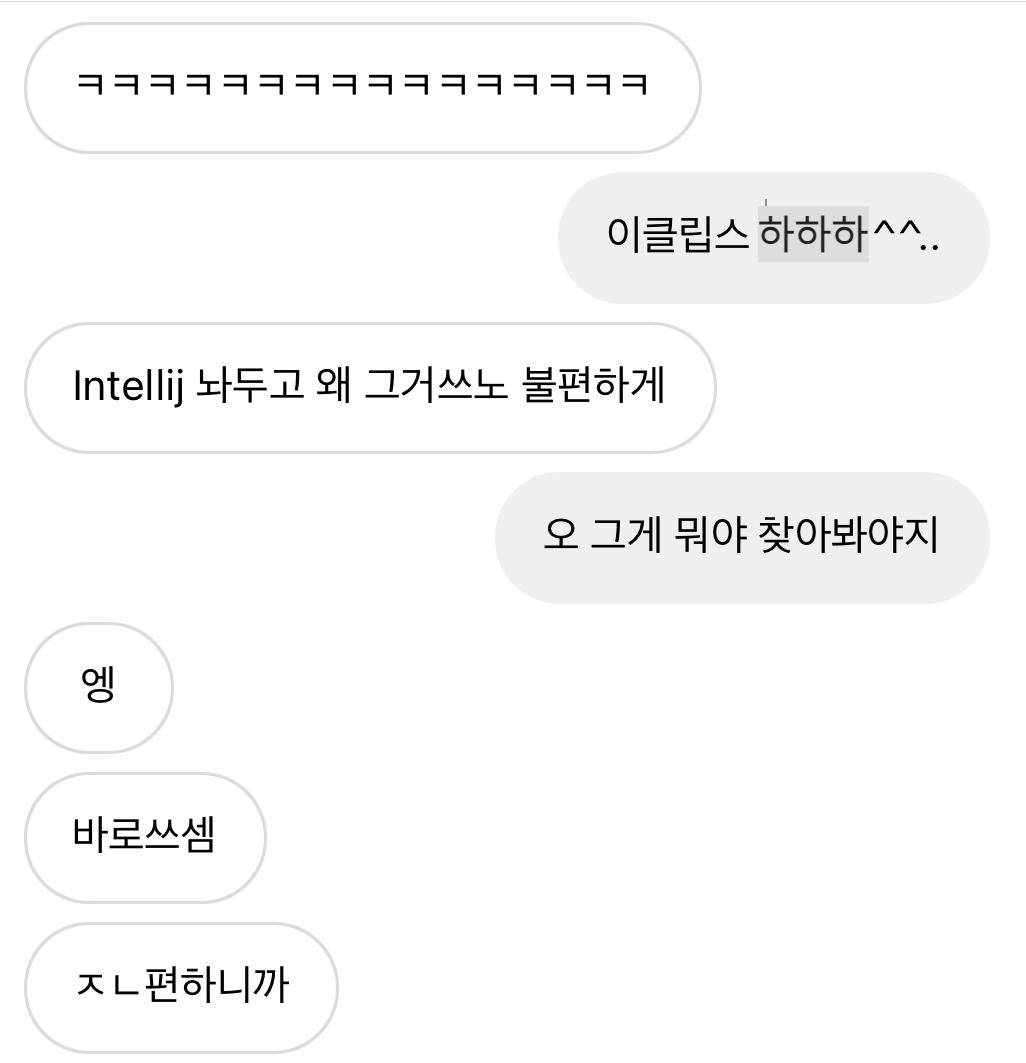 언젠가 인스타 스토리에 eclipse 속도의 문제성을 올리면서 친구에게 IntelliJ를 추천받은 적이 있다.