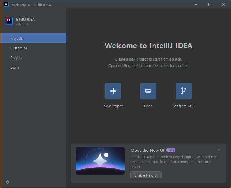 Reboot 후, 바탕화면에 생긴 IntelliJ를 클릭해서 실행시켜준다.