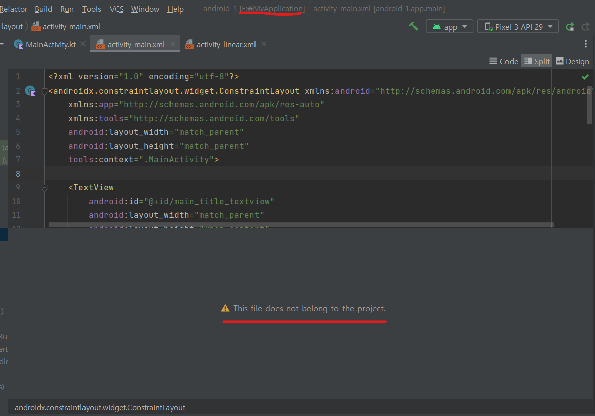 'the file does not belong to the project'문구가 뜨면서 화면이 안나올 때 해결방법입니다.