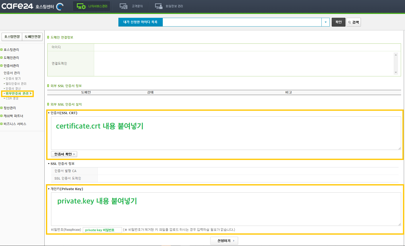 Cafe24 카페24 외부 SSL인증서 적용 방법
