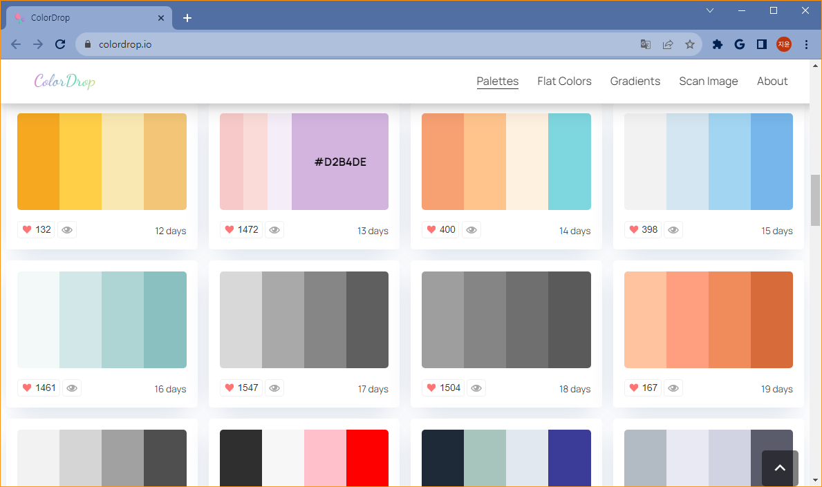 컬러팔레트, 그라데이션, 이미지에서 색상추출 기능을 제공하는 사이트입니다.