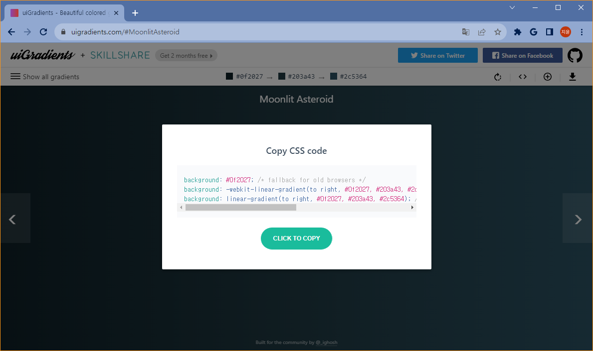그라데이션 사이트는 기본적으로 CSS를 지원하는 것 같네요😍