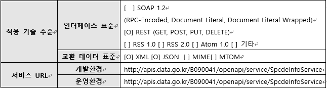 아래의 활용가이드에서 서비스 오퍼레이션명을 확인할 수 있고, 오픈API상세에서 다양한 개발언어들의 샘플코드를 제공해준다.