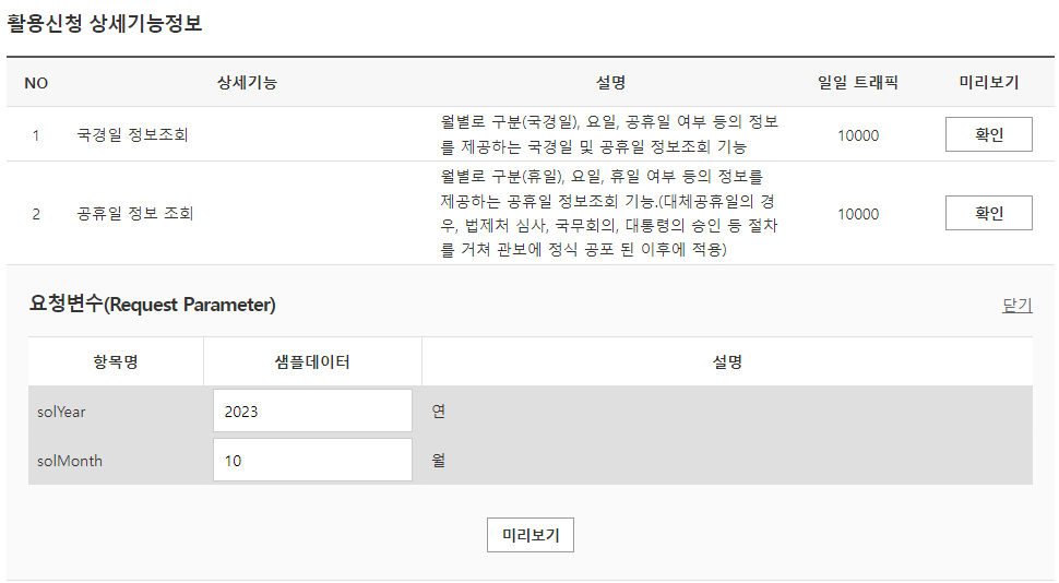 공휴일 API - 공공데이터 포털에서 공휴일 데이터 조회 -2. API사용