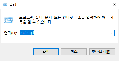 2. 실행창(Window+R)을 열어서 main.cpl 입력하면 마우스 속성 창이 나온다.