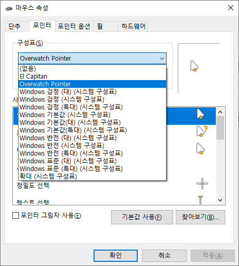 3. 포인터 탭의 구성표에서 선택해주면 끝!